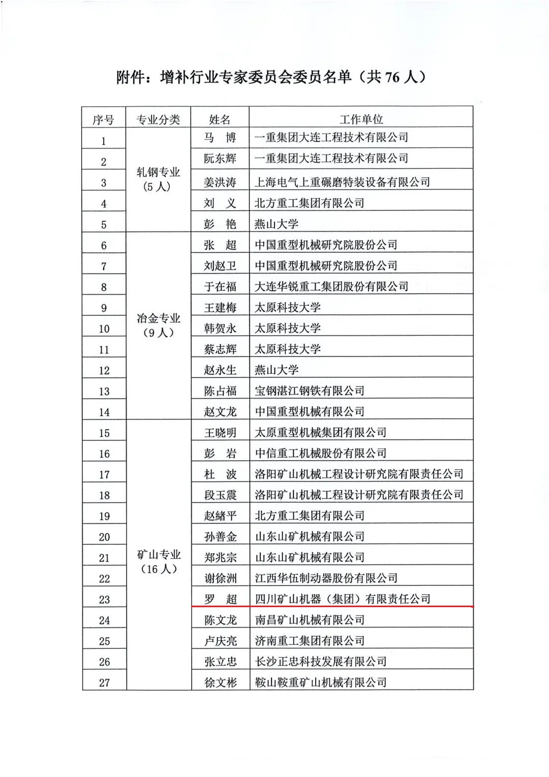 中國重型機械工業(yè)協(xié)會增補行業(yè)專家委員會委員的公告