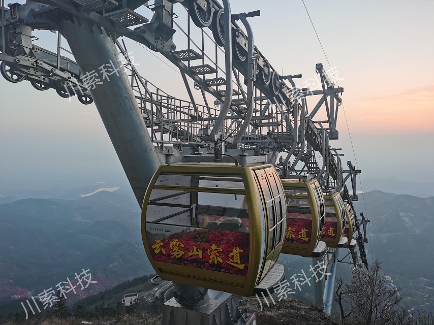 該索道平距為1097.36米,線路高差411.03米,線路采用單線脈動(dòng)循環(huán)式固定抱索器八人吊廂,最大單向小時(shí)運(yùn)量為680人。盡管在工程建設(shè)當(dāng)中頻頻遭遇新冠疫情等重大影響,為開(kāi)發(fā)云霧山的旅游資源,幫助山區(qū)脫貧致富,川礦索道工程公司在當(dāng)?shù)馗骷?jí)政府的支持和業(yè)主單位配合下,克服各種困難,精心組織施工,使索道得以順利完工,得到當(dāng)?shù)卣蜆I(yè)主方一致好評(píng),也為享有"西陵勝地、楚北名區(qū)、陂西陲障、漢地祖山"美譽(yù)的云霧山景區(qū),再添一處景觀。